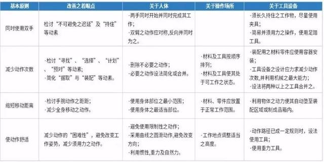 動作分析法:對操作者細微身體動作進行分析,刪除其無效動作,提高生產效率
